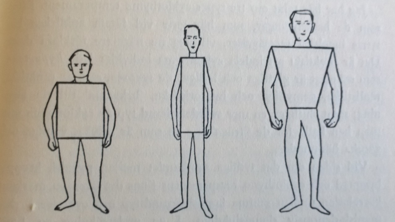 Jag har inte läst hela boken men fastnade för stycket om kroppsbyggnad och temperament. Som boken beskriver det var ämnet aktuellt för femtio år sedan och det handlar om att ställa psykiatriska diagnoser, eller riskfaktorer för att drabbas av psykisk sjukdom, utifrån en människas kroppsbyggnad.