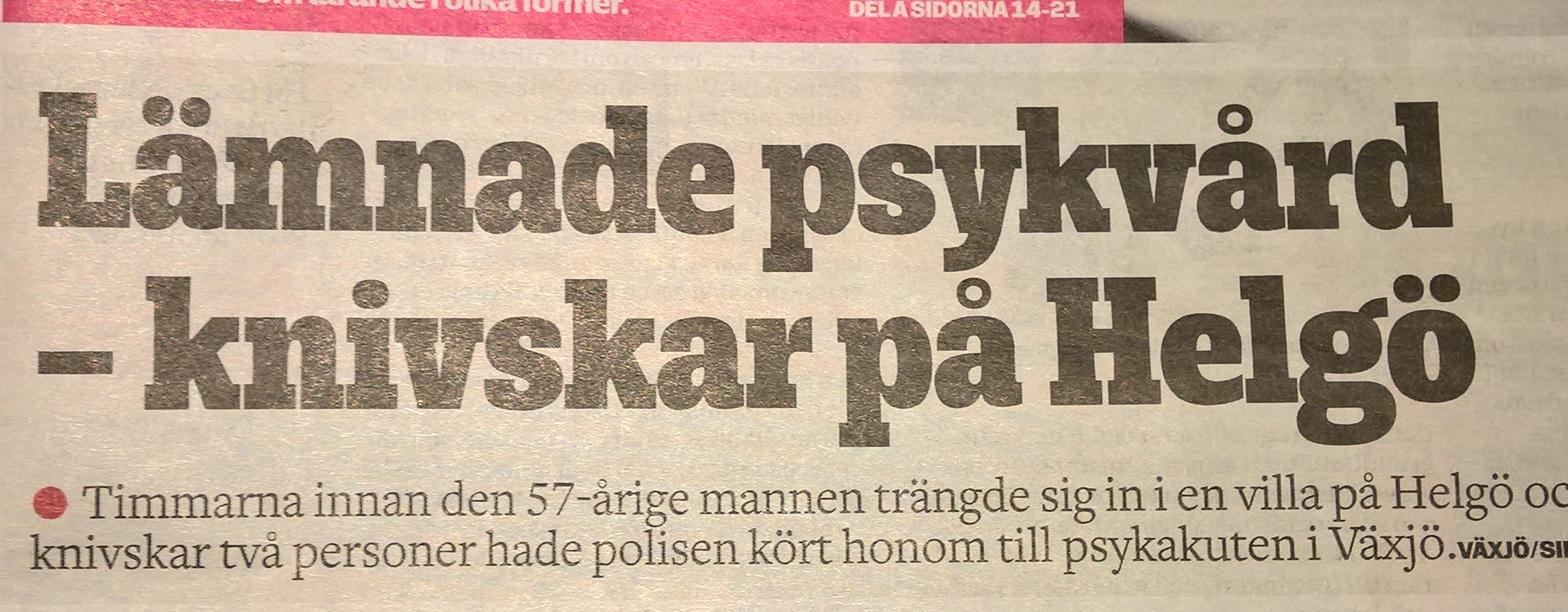 Under gårdagen (19/2) följer SMP upp med en underlig artikel med rubriken: ”Lämnade psykakuten och knivhögg kvinna”.