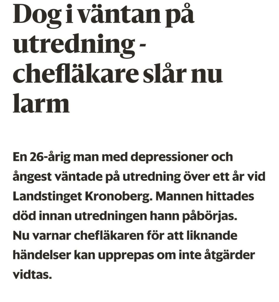 Jag tycker det är olyckligt med dessa oseriösa reportage. Ingen vinner på det. Det finns många unga människor som lider. Det finns inte alltid psykiatriska orsaker till lidandet. Psykiatrin i Växjö är en klinik som ligger långt i framkant för att bedöma och vägleda dessa patienter.