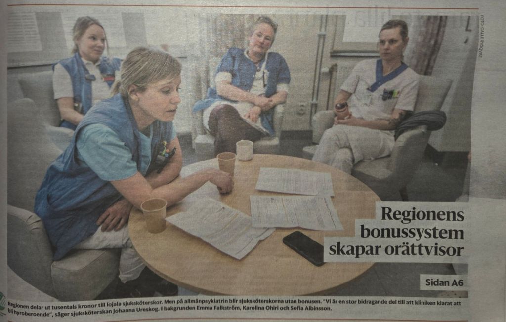 Regionledningen lyckades hitta kriterier för sitt bonussystem som belönade de flesta andra, men inte någon på allmänpsykiatrin. Det viktiga var inte hur många helgtimmar de arbetade utan att det skedde med rätt frekvens, dvs var tredje vecka.