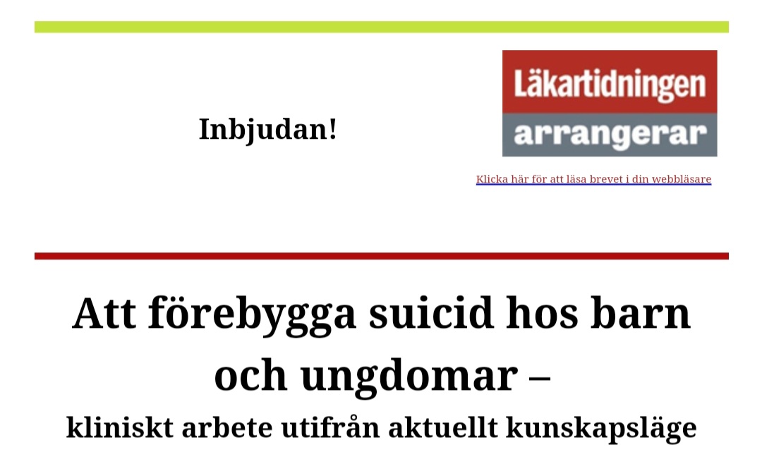 Som ett litet utdrag så var det en halvtimmes föreläsning om suicidriskbedömning av barn, och det betonades att det inte går att göra suicidriskbedömningar i syfte att avgöra suicidrisken (vilket jag har sagt i 12 år). Föreläsaren menade ändå att det var mycket viktigt att göra för att det kunde ha en suicidpreventiv effekt ( men det var nog ett önsketänkande för det fanns inget som styrkte det påståendet).